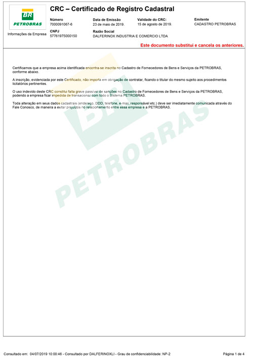 A DALFERINOX indústria e Comercio Ltda fundada em 27 de Julho de 1987. Desde lá, sempre voltada para o mercado de conexões tubulares industriais. Teve origem no trabalho de uma parceria entre os sócios técnicos da área Administrativa e Produtiva unidos e focados no segmento industrial. Em 32 anos, a empresa apresenta crescimento estrutural e tecnológico significativo no atendimento aos maiores mercados nacionais e internacionais, elevando dessa forma o prestígio de sua marca dentre os principais fabricantes e com destaque tanto para o atendimento técnico quanto para os requisitos de preços e prazos dos clientes.